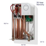 25 Year Warranty. 18kW with advanced power modulation and ultrasonic flow sensor electric tankless water heater provides efficient, continuous on demand hot water for whole home.